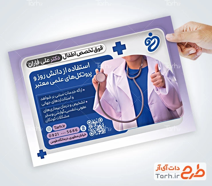 ابعاد قابل چاپ طرح لایه باز تراکت دکتر اطفال و کاربرد آن