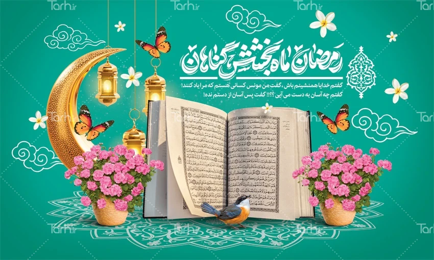 طرح لایه باز بنر پشت سن ماه رمضان با فرمت psd و قابل ویرایش در نرم افزار فتوشاپ به صورت لایه باز توسط تیم طراحان طرح دات آی آر طراحی شده است. در بنر ماه رمضان از تصاویر و المان های با کیفیت و متناسب با استاندارد چاپ استفاده گردیده است. بنر خام رمضان شامل تایپوگرافی رمضان ماه بخشش گناهان، عکس قرآن کریم، وکتور ماه و گلدان میباشد که المان های استفاده شده در بنر حلول ماه مبارک رمضان قابلیت ویرایش، جابه جایی و تغییر سایز را دارا بوده و شما می توانید متناسب با سلیقه خودتان طرح بنر رمضان را ویرایش نمایید.