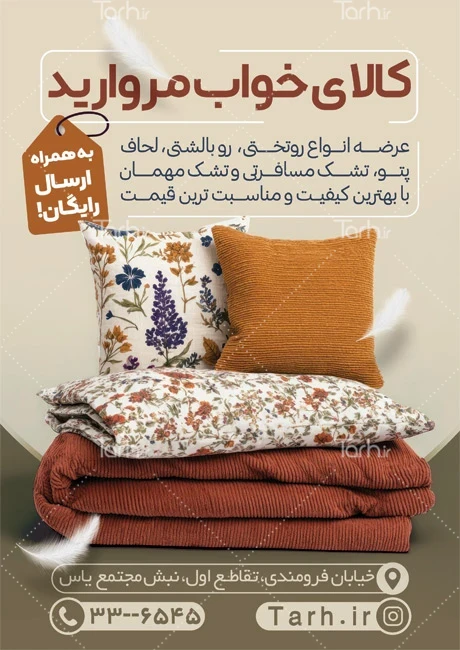 طرح تراکت آماده فروشگاه کالای خواب شامل عکس بالش و پتو کد فایل 8960124