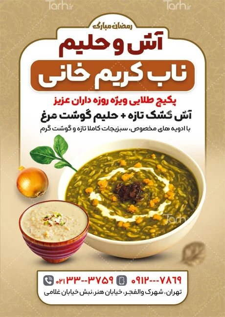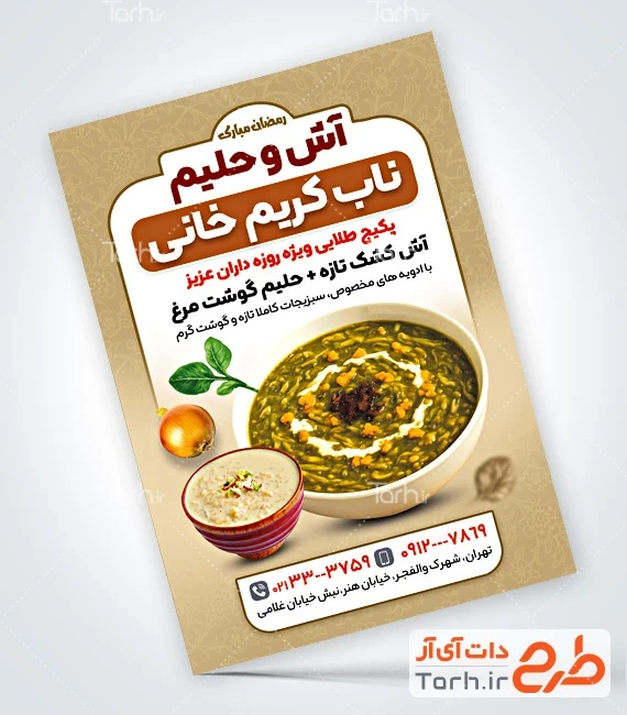 نمونه تراکت آش و حلیم با قابلیت ویرایش المان ها کد فایل 8970415