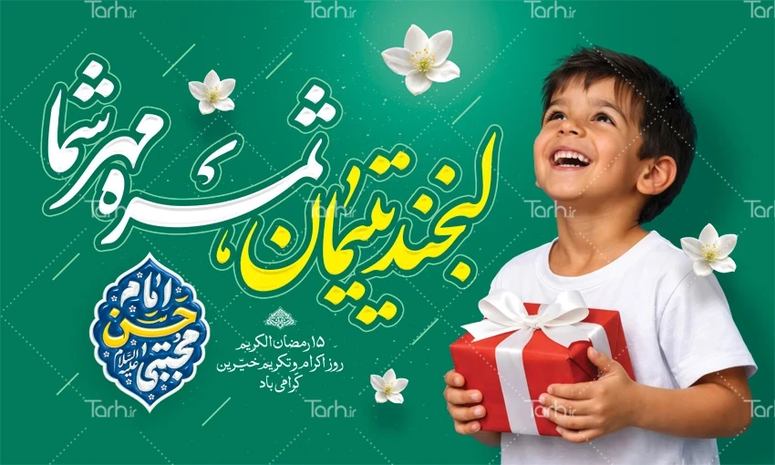 بنر خام اکرام و تکریم خیرین با فرمت psd و قابل ویرایش در نرم افزار فتوشاپ به صورت لایه باز توسط تیم طراحان طرح دات آی آر طراحی شده است. در بنر ماه رمضان از تصاویر و المان های با کیفیت و متناسب با استاندارد چاپ استفاده گردیده است. طرح لایه باز اکرام ایتام در ماه رمضان شامل تایپوگرافی امام حسن مجتبی میباشد و عکس کودک که المان های استفاده شده در بنر کمک به نیازمندان و روز اکرام قابلیت ویرایش، جابه جایی و تغییر سایز را دارا بوده و شما می توانید متناسب با سلیقه خودتان طرح بنر اکرام ایتام و بنر ولادت امام حسن مجتبی مجتبی را ویرایش نمایید.