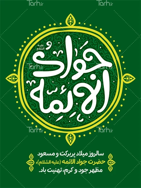 طرح آماده بنر ولادت امام جواد با تایپوگرافی جواد الائمه کد فایل 9027541