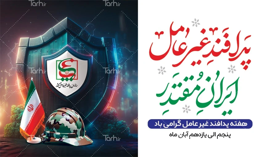 طرح قابل ویرایش بنر هفته پدافند غیر عامل با فرمت psd و قابل ویرایش در نرم افزار فتوشاپ به صورت لایه باز توسط تیم طراحان طرح دات آی آر طراحی شده است. در طرح لایه باز تبریک هفته پدافند غیرعامل از تصاویر و المان های با کیفیت و متناسب با استاندارد چاپ استفاده گردیده است. بنر خام هفته پدافند غیر عامل شامل شعار پدافند غیرعامل ایران مقتدر و لوگو سازمان پدافند غیرعامل می باشد که المان های استفاده شده در بنر هفته پدافند غیر عامل قابلیت ویرایش، جابه جایی و تغییر سایز را دارا بوده و شما می توانید متناسب با سلیقه خودتان طرح هفته پدافند غیر عامل را ویرایش نمایید.