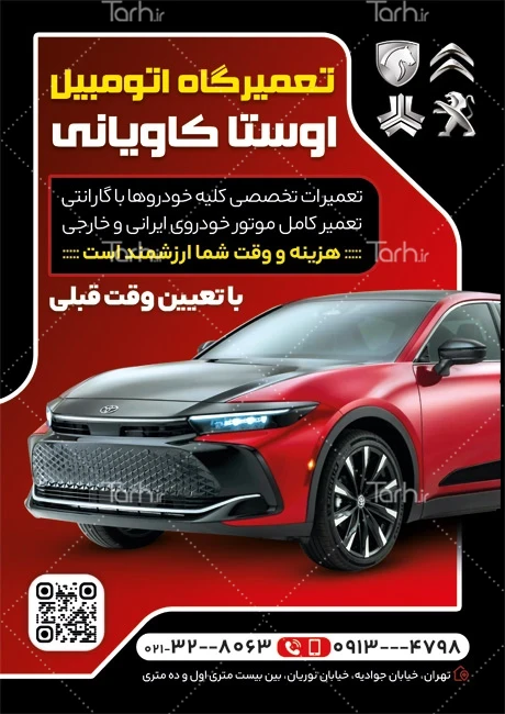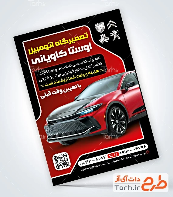 دانلود طرح تراکت مکانیکی با فرمت psd و قابل ویرایش در نرمافزار فتوشاپ بهصورت لایه باز توسط تیم طراحان طرح دات آی آر طراحی شده است. در نمونه تراکت مکانیکی ماشین از تصاویر و المانهای باکیفیت و متناسب با استاندارد چاپ استفادهشده، همچنین نکات مهم در طرح تراکت تعمیرگاه اتومبیل مانند رنگبندی، رعایت حاشیه، فاصلهها، فضای کافی برای درج متن، سایز و نوع فونت مناسب طراحی تراکت و ... رعایت گردیده است. طرح لایه باز تراکت تعمیرگاه خودرو شامل عکس ماشین میباشد که المانهای استفادهشده در طرح تراکت مکانیکی قابلیت ویرایش، جابهجایی و تغییر سایز را دارا بوده و شما میتوانید متناسب باسلیقه خودتان تراکت لایه باز مکانیکی را ویرایش نمایید، همچنین با تغییر تصاویر و متنها میتوانید طرح تراکت اتوسرویس را به طرح تراکت کسب و کار مد نظر خود شخصی سازی نمایید.