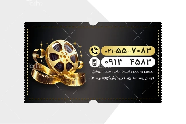 فایل لایه باز کارت ویزیت ویدیو کلوپ با تم مشکی طلایی کد فایل 9052738