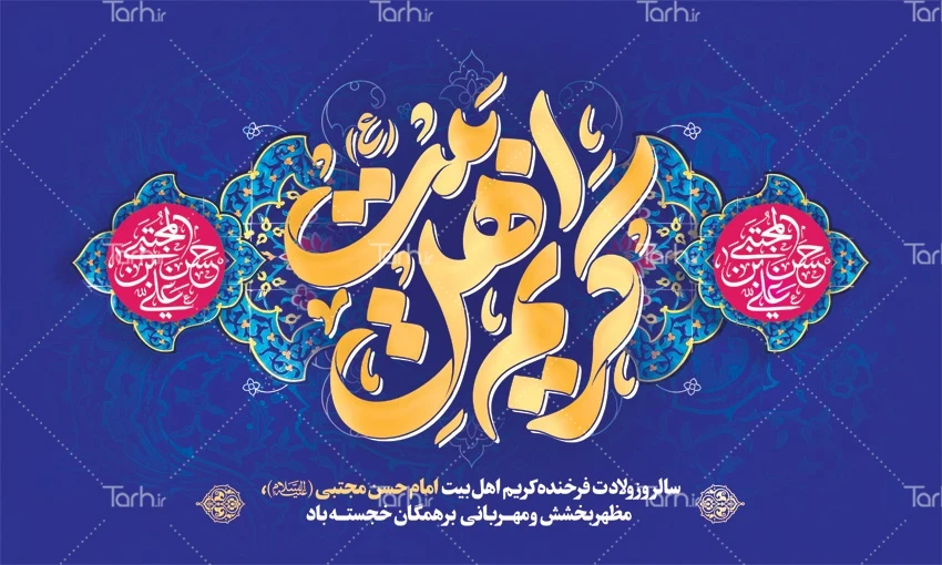 طرح بنر پشت سن ولادت امام حسن مجتبی با تایپوگرافی کریم اهل بیت کد فایل 9064283