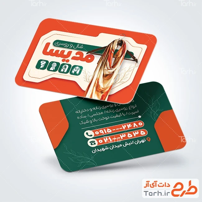 کارت ویزیت خام روسری فروشی با رنگ بندی سبز و نارنجی کد فایل 9068245