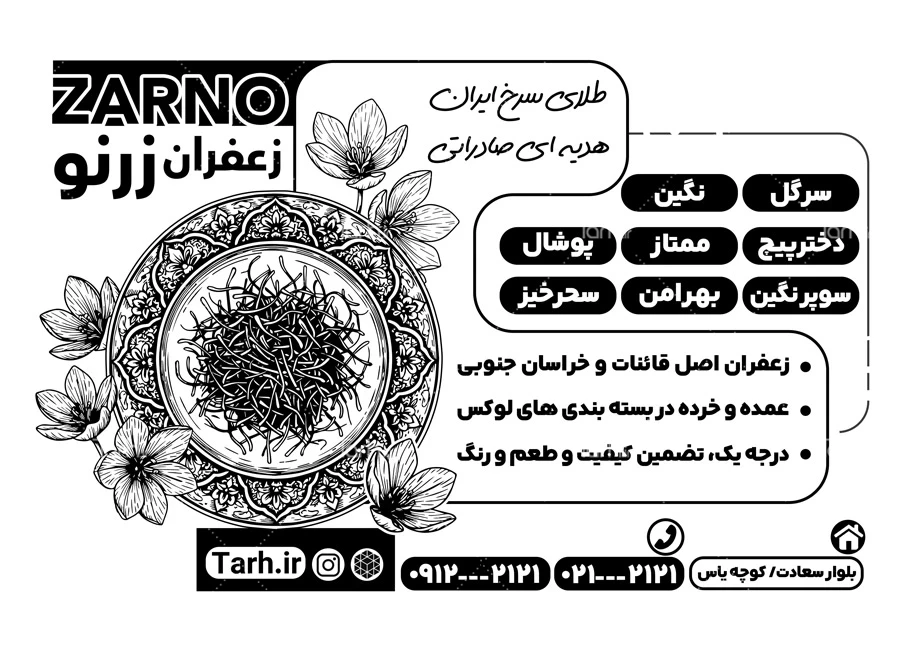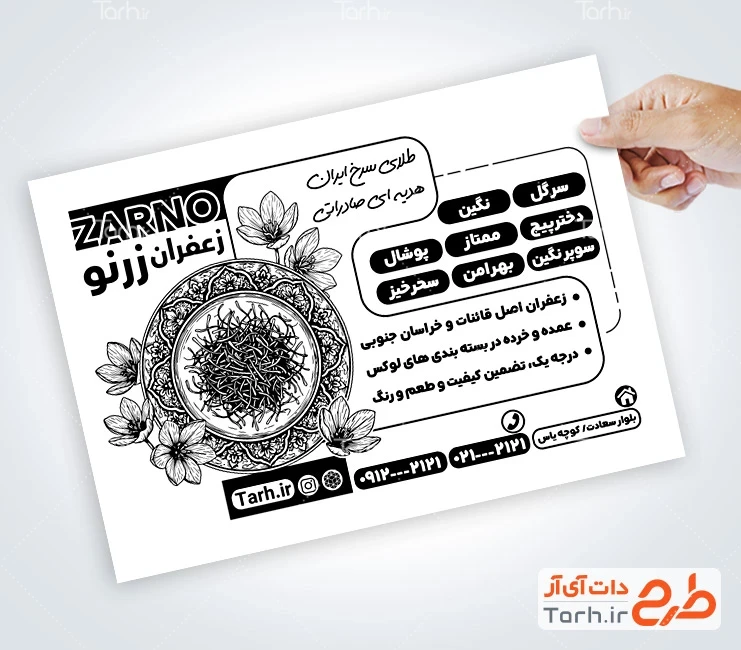 ابعاد قابل چاپ طرح تراکت سیاه سفید زعفران فروشی و کاربرد آن