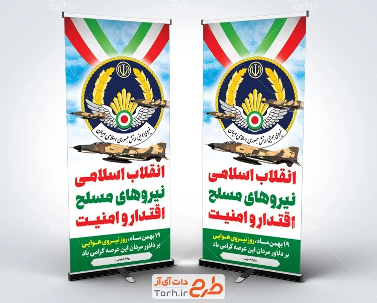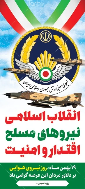 طرح بنر استندی روز نیروی هوایی با عکس لوگو نیروی هوایی ارتش جمهوری اسلامی ایران کد فایل 9124078
