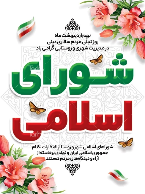 دانلود طرح بنر روز شوراها با فرمت psd و قابل ویرایش در نرم افزار فتوشاپ به صورت لایه باز توسط تیم طراحان طرح دات آی آر طراحی شده است. در طرح لایه باز روز شوراها از تصاویر و المان های با کیفیت و متناسب با استاندارد چاپ استفاده گردیده است. پوستر روز شوراها شامل وکتور گل و عکس پرچم ایران میباشد که المان های استفاده شده در دانلود بنر روز ملی شوراها قابلیت ویرایش، جابه جایی و تغییر سایز را دارا بوده و شما می توانید متناسب با سلیقه خودتان طرح بنر روز شوراها را ویرایش نمایید.