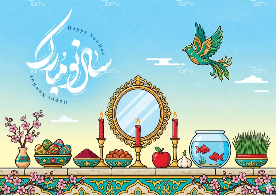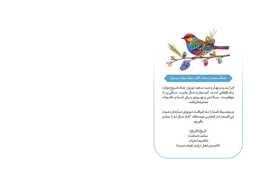 طرح کارت دعوت عید نوروز با تایپوگرافی سال نو مبارک کد فایل 9135647