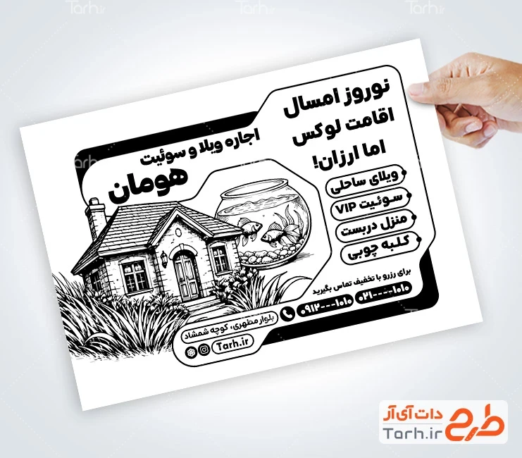 طرح تراکت سیاه سفید اجاره سوئیت و ویلا با وکتور تنگ ماهی کد فایل 9138547