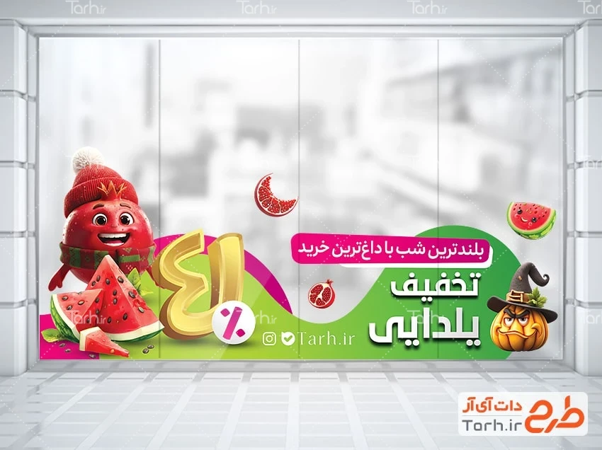 ابعاد قابل چاپ طرح لایه باز استیکر فروش ویژه شب یلدا و کاربرد آن