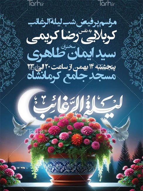 طرح خام بنر اعلامیه شب آرزوها با خوشنویسی لیله الرغائب کد فایل 9162784