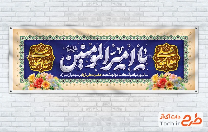 طرح پلاکارد خام ولادت حضرت علی شامل تایپوگرافی یا امیرالمومنین کد فایل 9164508