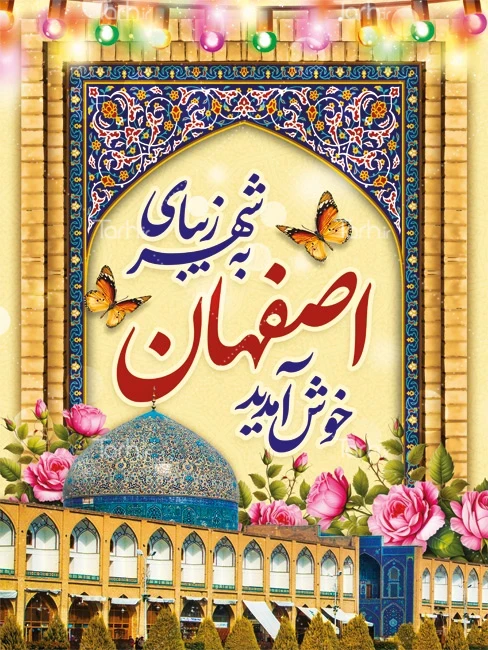 طرح آماده بنر خیر مقدم میهمانان نوروزی دارای خوشنویسی به شهر زیبای اصفهان خوش آمدید کد فایل 9165347