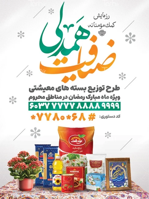 طرح بنر کمک مومنانه رمضان با فرمت psd و قابل ویرایش در نرم افزار فتوشاپ به صورت لایه باز توسط تیم طراحان طرح دات آی آر طراحی شده است. در بنر ماه مبارک رمضان از تصاویر و المان های با کیفیت و متناسب با استاندارد چاپ استفاده گردیده است. طرح بنر کمک مومنانه در ماه رمضان شامل عکس مواد غذایی میباشد که المان های استفاده شده در بنر کمک به خیریه در ماه رمضان قابلیت ویرایش، جابه جایی و تغییر سایز را دارا بوده و شما می توانید متناسب با سلیقه خودتان طرح بنر پویش نذر ماه رمضان را ویرایش نمایید.