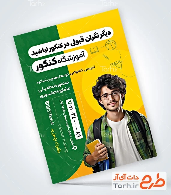 تراکت لایه باز کلاس کنکور با فرمت psd و قابل ویرایش در نرمافزار فتوشاپ بهصورت لایه باز توسط تیم طراحان طرح دات آی آر طراحی شده است. در نمونه تراکت تبلیغاتی آموزشگاه کنکور از تصاویر و المانهای باکیفیت و متناسب با استاندارد چاپ استفادهشده، همچنین نکات مهم در طرح تراکت کلاس کنکور مانند رنگبندی، رعایت حاشیه، فاصلهها، فضای کافی برای درج متن، سایز و نوع فونت مناسب طراحی تراکت و ... رعایت گردیده است. طرح لایه باز تراکت آموزشگاه کنکور شامل عکس دانش آموز میباشد که المانهای استفادهشده در طرح تراکت خام آموزشگاه کنکور قابلیت ویرایش، جابهجایی و تغییر سایز را دارا بوده و شما میتوانید متناسب باسلیقه خودتان تراکت لایه باز آموزشگاه کنکور را ویرایش نمایید، همچنین با تغییر تصاویر و متنها میتوانید طرح تراکت آموزشگاه کنکور را به طرح تراکت کسب و کار مد نظر خود شخصی سازی نمایید.