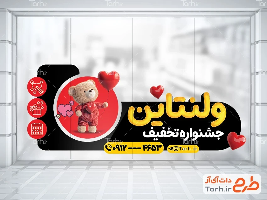 طرح لایه باز استیکر تخفیف ولنتاین با فرمت psb و قابل ویرایش در نرم افزار فتوشاپ به صورت لایه باز توسط تیم طراحان طرح دات آی آر طراحی شده است. در طرح استیکر تبلیغاتی فروش ویژه ولنتاین از تصاویر و المان های با کیفیت و متناسب با استاندارد چاپ استفاده شده، همچنین نکات مهم در طرح لایه باز استیکر فروش ویژه تخفیف ولنتاین مانند رنگ بندی، رعایت حاشیه، فاصله ها، سایز و نوع فونت مناسب طراحی استیکر و ... رعایت گردیده است. طرح برچسب روی شیشه فروش ویژه شامل تصویرسازی هدیه و خرس عروسکی می باشد و المان های استفاده شده در طرح برچسب شیشه تخفیف ویژه روز عشق قابلیت ویرایش، جابه جایی و تغییر سایز را دارا بوده و شما می توانید متناسب با سلیقه خودتان طرح برچسب دیواری فروش ویژه روز عشق را ویرایش نمایید، همچنین با تغییر تصاویر و متن ها می توانید طرح استیکر تخفیف ویژه ولنتاین را به طرح استیکر شغل مورد نظر خود تبدیل نمایید.