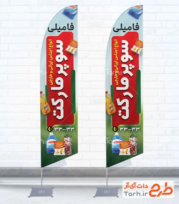 طرح پرچم ساحلی سوپر مارکت با فرمت psd و قابل ویرایش در نرم افزار فتوشاپ به صورت لایه باز توسط تیم طراحان طرح دات آی آر طراحی شده است. در طرح پرچم ساحلی هایپرمارکت از تصاویر و المان های با کیفیت و متناسب با استاندارد چاپ استفاده گردیده است. طرح پرچم ساحلی هلالی هایپر مارکت شامل تصویرسازی مواد غذایی و مرد می باشد که المان های استفاده شده در طرح استند پرچمی ایستاده هایپر مارکت قابلیت ویرایش، جابه جایی و تغییر سایز را دارا بوده و شما میتوانید متناسب با سلیقه خودتان طرح لایه باز پرچم ساحلی و بنر هایپر مارکت را ویرایش نمایید.
