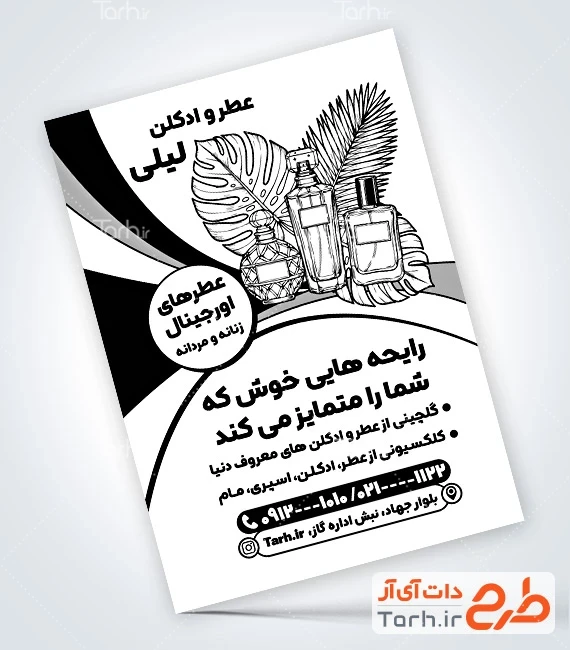 ابعاد تراکت تبلیغاتی سیاه و سفید عطر و ادکلن در جدول ویژگیهای فایل درجشده و با توجه به لایه باز بودن و کیفیت بالای طرح تراکت ریسو عطر و ادکلن فروشی، قابلیت ویرایش و تبدیل به سایز دلخواه، همچنین چاپ روی متریالهای مختلف مانند انواع کاغذ، گلاسه، کاغذ الوان و ... را دارا میباشد. همچنین میتوان طرح سیاه سفید عطر فروشی را در زمینه های چاپ سیلک ، نایلون، ساک دستی، پاکت دستی و کیسه نیز استفاده کرد. تراکت های سیاه سفید یا ریسو یک ابزار تبلیغاتی بسیار موثر محسوب می شوند و به دلیل هزینه کم و تأثیر بالا، در بسیاری از کسب و کارها به عنوان روشی اقتصادی و موثر برای انتقال اطلاعات به مخاطبان برای تبلیغات و رویدادهای مختلف استفاده میشوند.