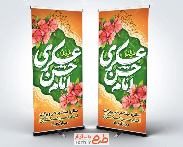 طرح بنر ایستاده میلاد امام حسن عسکری با فرمت psd و قابل ویرایش در نرم افزار فتوشاپ به صورت لایه باز توسط تیم طراحان طرح دات آی آر طراحی شده است. در طرح لایه باز استند ولادت امام حسن عسکری از تصاویر و المان های با کیفیت و متناسب با استاندارد چاپ استفاده گردیده است. طرح بنر ایستاده ولادت امام حسن عسکری شامل تایپوگرافی امام حسن عسکری و کادر اسلیمی می باشد که المان های استفاده شده در بنر خام ولادت امام حسن عسکری قابلیت ویرایش، جابه جایی و تغییر سایز را دارا بوده و شما می توانید متناسب با سلیقه خودتان طرح بنر ولادت امام حسن عسکری را ویرایش نمایید.