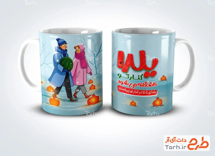 طرح قابل ویرایش ماگ شب یلدا شامل تصویرسازی عاشقانه کد فایل 9245861