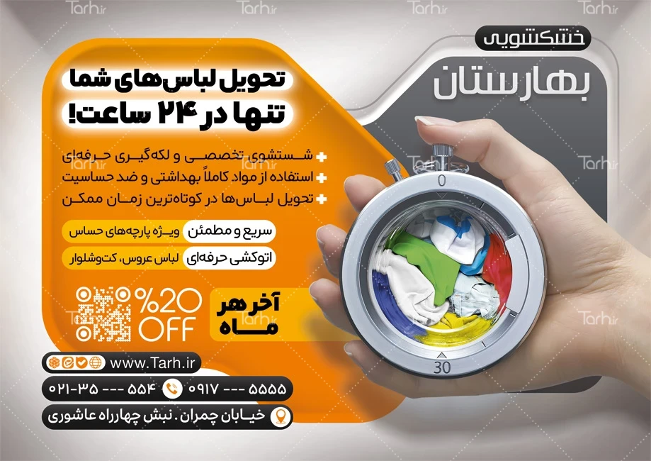 طرح تراکت خشکشویی و اتوشویی با قابلیت ویرایش المان ها کد فایل 9256718