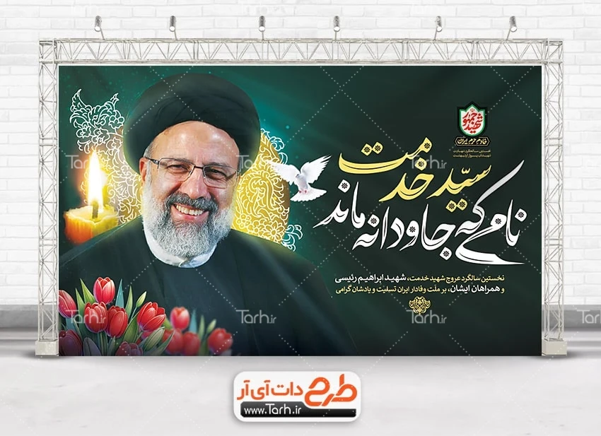 بنر لایه باز سالگرد شهید رئیسی با خوشنویسی سید خدمت نامی که جاودانه ماند کد فایل 9261804
