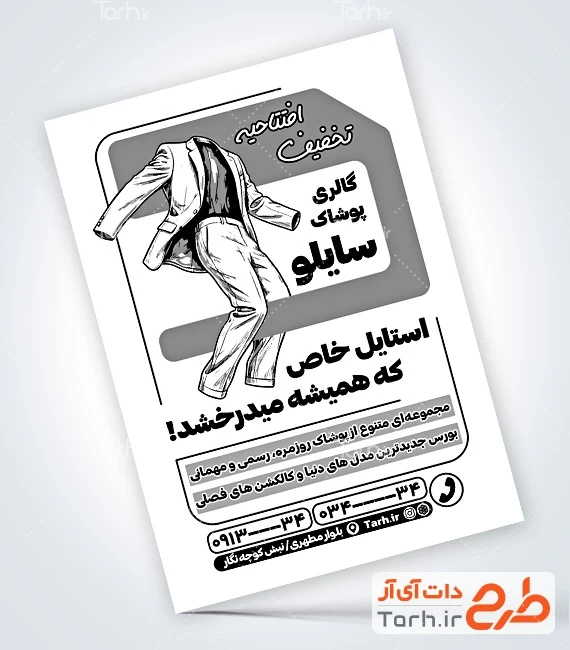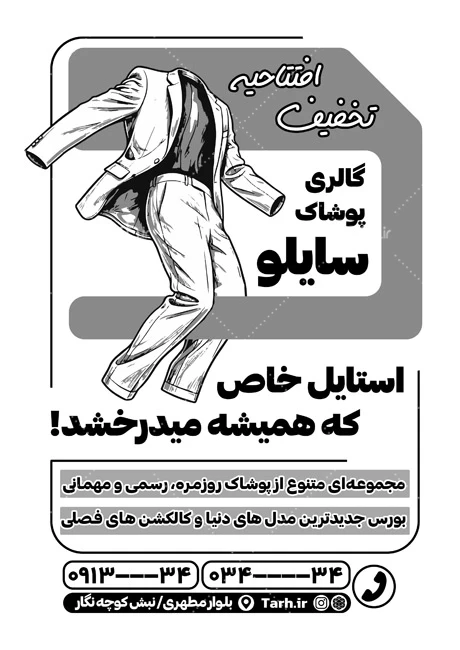 - دسته بندی : تراکت سیاه سفید پوشاک آقایان