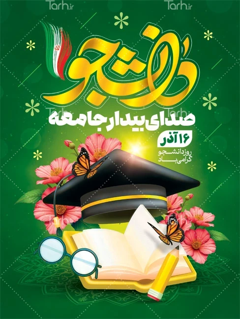 طرح پوستر تبریک روز دانشجو با تایپوگرافی دانشجو کد فایل 9265107