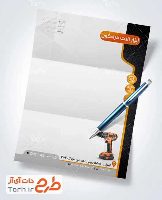 طرح سربرگ ابزارآلات شامل عکس دریل کد فایل 9283145
