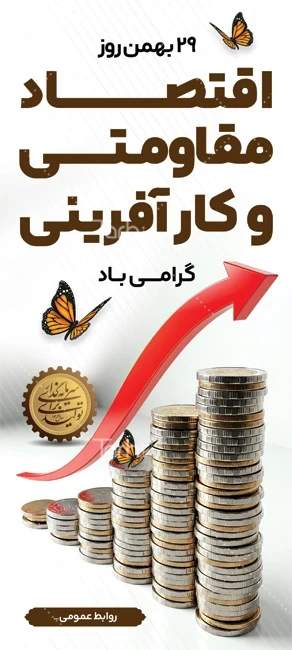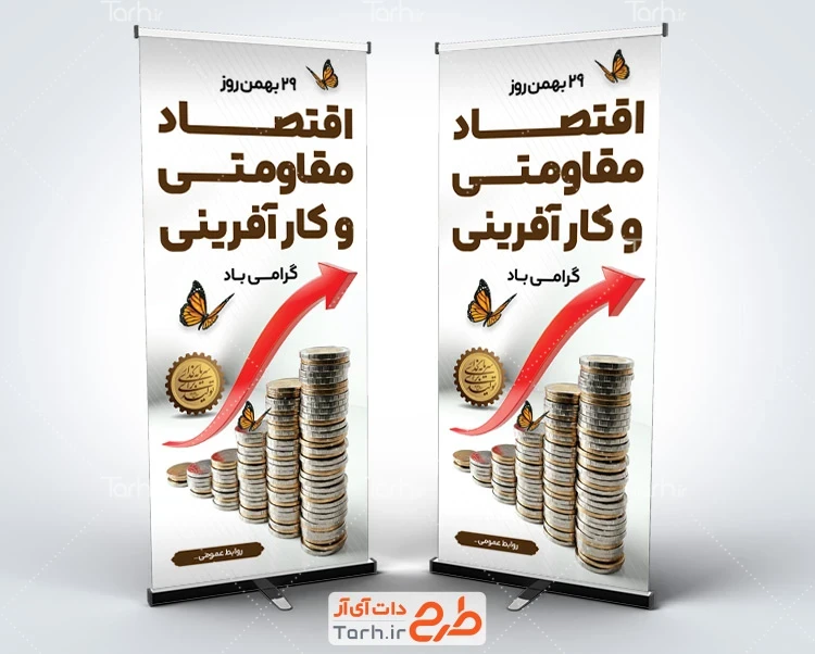 طرح آماده بنر ایستاده روز اقتصاد مقاومتی و کار آفرینی با قابلیت ویرایش المان ها کد فایل 9318506