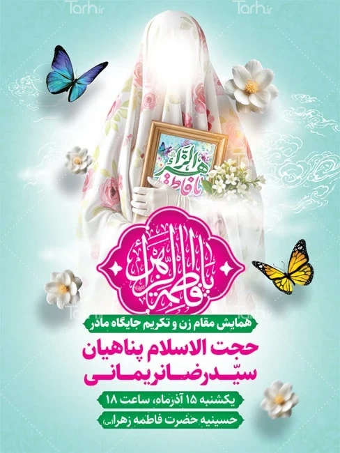 بنر آماده اطلاعیه گرامیداشت تکریم روز مادر دارای خوشنویسی یا فاطمه الزهرا کد فایل 9350167