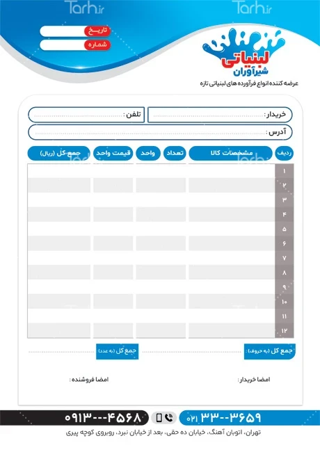 ابعاد قابل چاپ طرح ست اداری لبنیاتی و کاربرد آن