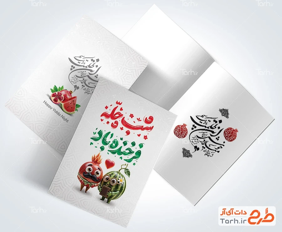 طرح کارت پستال یلدا با فرمت psd و قابل ویرایش در نرم افزار فتوشاپ به صورت لایه باز توسط تیم طراحان طرح دات آی آر طراحی شده است. در طرح کارت پستال لایه باز شب یلدا از تصاویر و المان های با کیفیت و متناسب با استاندارد چاپ استفاده گردیده است. طرح کارت پستال شب یلدا شامل تصویرسازی هندوانه و انار، خوشنویسی شعر یلدا و تایپوگرافی شب چله فرخنده باد می باشد که المان های استفاده شده در طرح لایه باز کارت پستال یلدا قابلیت ویرایش، جابه جایی و تغییر سایز را دارا بوده و شما می توانید متناسب با سلیقه خودتان طرح کارت تبریک شب یلدا را ویرایش نمایید.