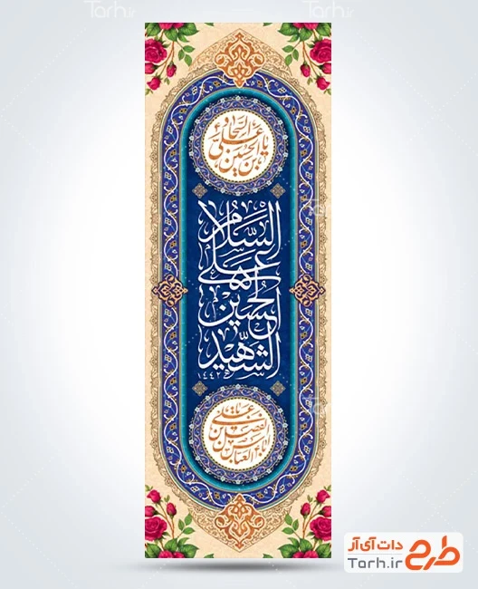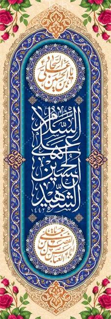 طرح خام کتیبه عمودی اعیاد شعبانیه با خوشنویسی السلام علی الحسین الشهید کد فایل 9368741