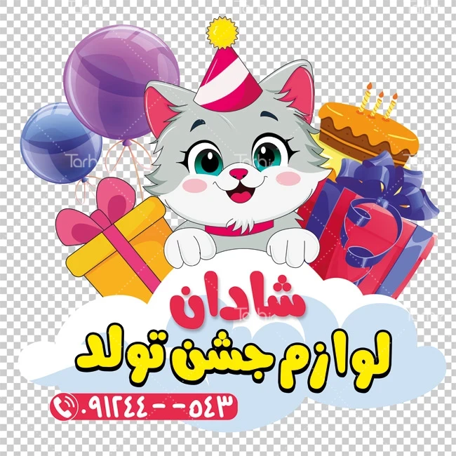 طرح استیکر دیواری فروشگاه لوازم تولد شامل وکتور گربه کد فایل 9401872