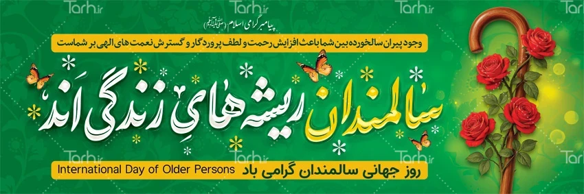 طرح آماده پلاکارد روز سالمندان با فرمت psd و قابل ویرایش در نرم افزار فتوشاپ به صورت لایه باز توسط تیم طراحان طرح دات آی آر طراحی شده است. در طرح لایه باز روز سالمندان از تصاویر و المان های با کیفیت و متناسب با استاندارد چاپ استفاده گردیده است. طرح بنر روز جهانی سالمندان شامل خوشنویسی سالمندان ریشه های زندگی اند، عکس گل و عصا می باشد که المان های استفاده شده در بنر لایه باز روز سالمندان قابلیت ویرایش، جابه جایی و تغییر سایز را دارا بوده و شما می توانید متناسب با سلیقه خودتان طرح روز جهانی سالمندان را ویرایش نمایید.