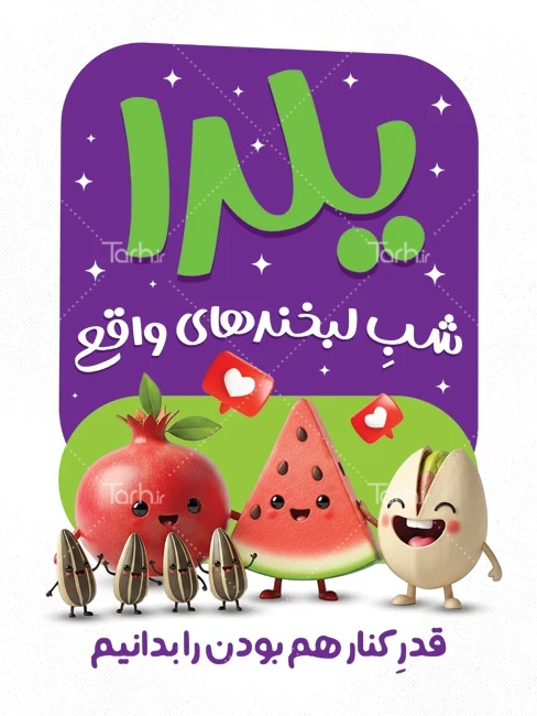 طرح خام پوستر تبریک یلدا دارای تصویرسازی هندوانه و انار کد فایل 9417203