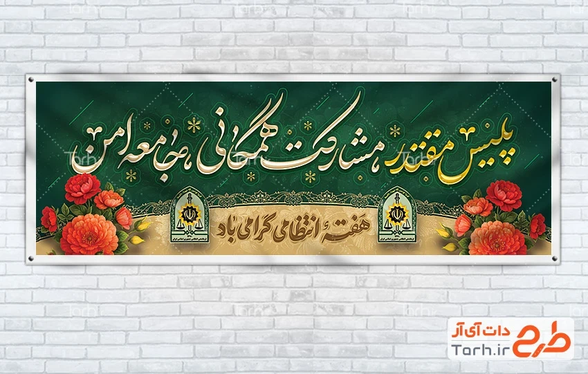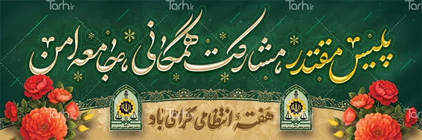 طرح پلاکارد آماده هفته نیروی انتظامی با فرمت psd و قابل ویرایش در نرم افزار فتوشاپ به صورت لایه باز توسط تیم طراحان طرح دات آی آر طراحی شده است. در طرح لایه باز هفته نیروی انتظامی و روز پلیس از تصاویر و المان های با کیفیت و متناسب با استاندارد چاپ استفاده گردیده است. طرح بنر هفته نیروی انتظامی شامل تایپوگرافی هفته انتظامی گرامی باد و خوشنویسی پلیس مقتدر مشارکت همگانی جامعه امن می باشد که المان های استفاده شده در بنر لایه باز روز نیروی انتظامی قابلیت ویرایش، جابه جایی و تغییر سایز را دارا بوده و شما می توانید متناسب با سلیقه خودتان طرح هفته نیروی انتظامی را ویرایش نمایید.