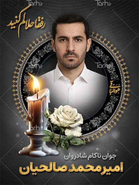 بنر خام عکس مرحوم با فرمت psd و قابل ویرایش در نرم افزار فتوشاپ به صورت لایه باز توسط تیم طراحان طرح دات آی آر طراحی شده است. در طرح لایه باز عکس مرحوم از تصاویر و المان های با کیفیت و متناسب با استاندارد چاپ استفاده گردیده است. طرح بنر عکس مرحوم شامل محل جایگذاری عکس مرحوم، تایپوگرافی هوالباقی، خوشنویسی رفقا حلالم کنید و عکس گل و شمع می باشد که المان های استفاده شده در بنر تصویر مرحوم قابلیت ویرایش، جابه جایی و تغییر سایز را دارا بوده و شما می توانید متناسب با سلیقه خودتان طرح بنر ترحیم و تصویر مرحوم را ویرایش نمایید.