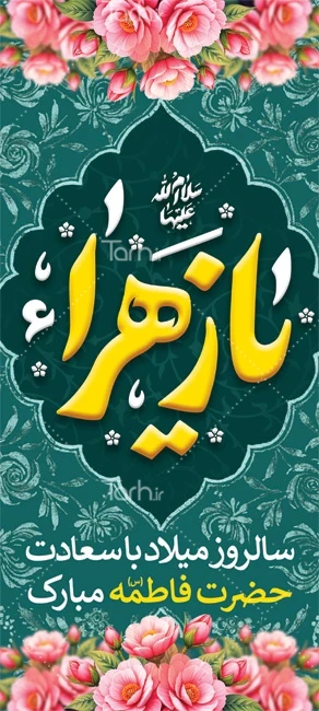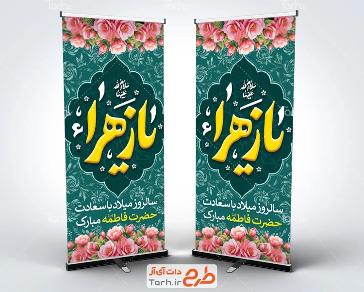 طرح بنر استندی ولادت حضرت فاطمه با تایپوگرافی یا زهرا کد فایل 9453678