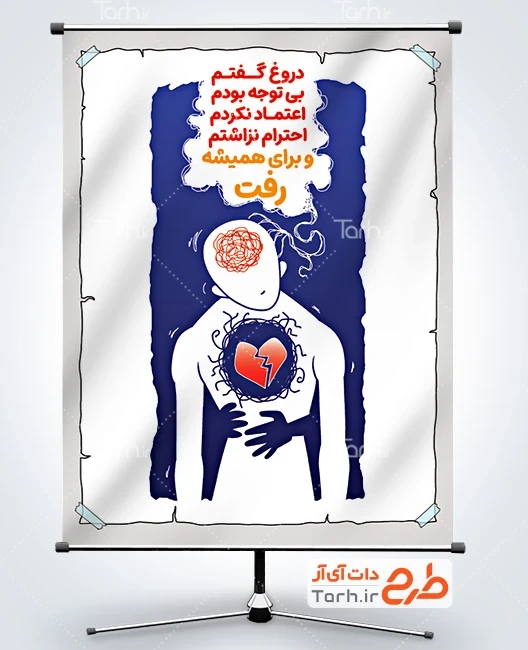 طرح بنر دلایل طلاق با فرمت psd و قابل ویرایش در نرم افزار فتوشاپ به صورت لایه باز توسط تیم طراحان طرح دات آی آر طراحی شده است. در طرح لایه باز دلایل طلاق از تصاویر و المان های با کیفیت و متناسب با استاندارد چاپ استفاده گردیده است. پوستر طلاق شامل تصویرسازی آدمک وقلب شکسته میباشد که المان های استفاده شده در بنر لایه باز آسیب طلاق قابلیت ویرایش، جابه جایی و تغییر سایز را دارا بوده و شما می توانید متناسب با سلیقه خودتان طرح بنر خام دلایل طلاق را ویرایش نمایید.