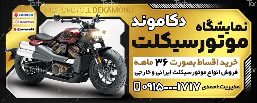 طرح لایه باز بنر فروشگاه موتورسیکلت با تم مشکی طلایی کد فایل 9482071