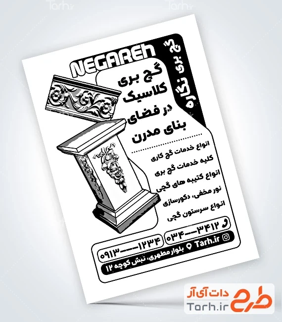 ابعاد قابل چاپ طرح تراکت سیاه سفید گچبری و کاربرد آن