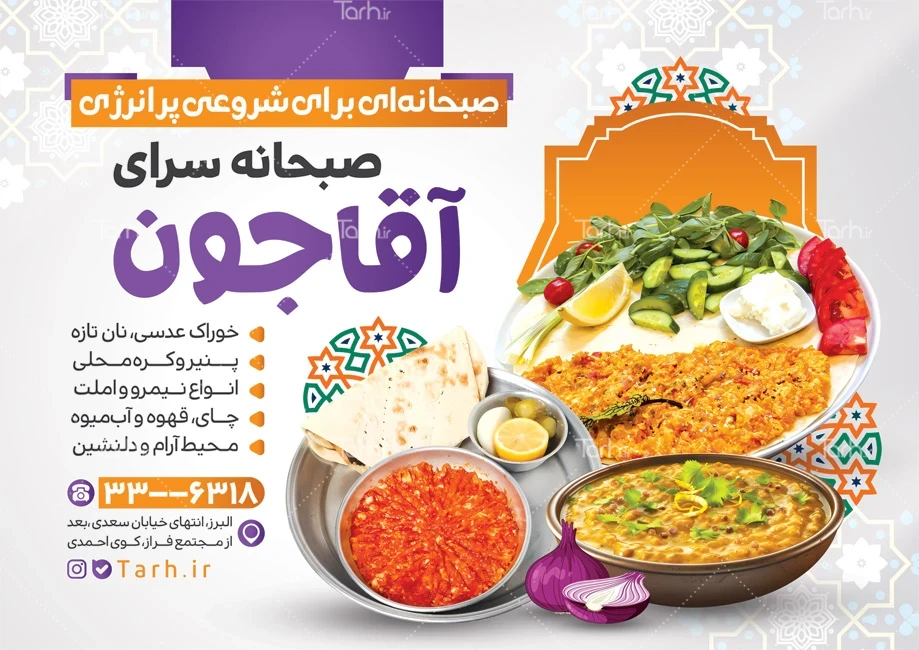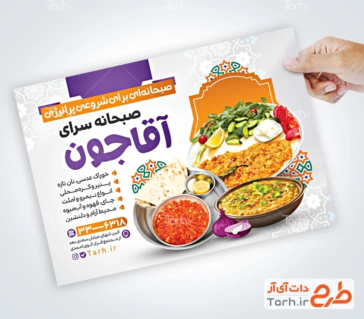 فایل لایه باز تراکت صبحانه سرا با عکس املت کد فایل 9501763