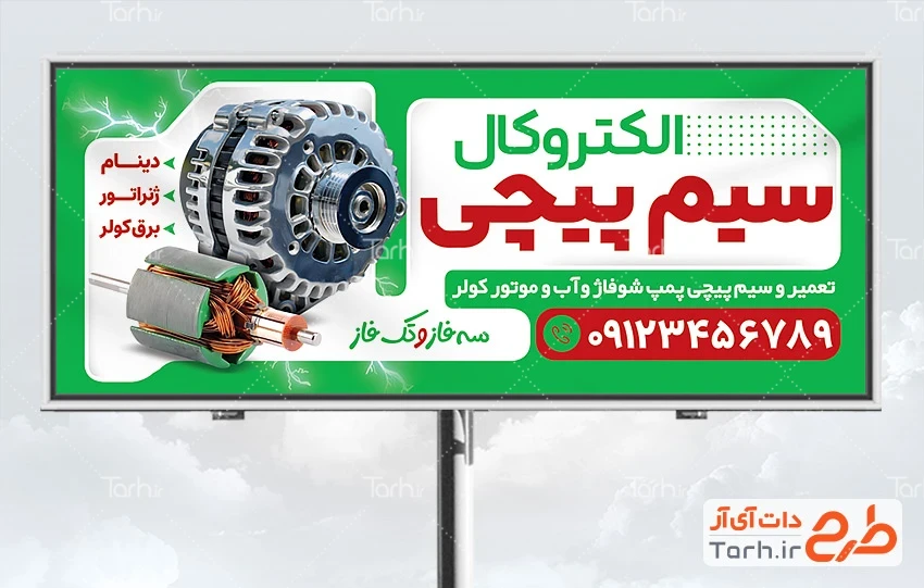 طرح بیلبورد الکترو سیم پیچی با تم سبز کد فایل 9502138