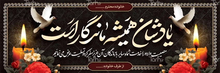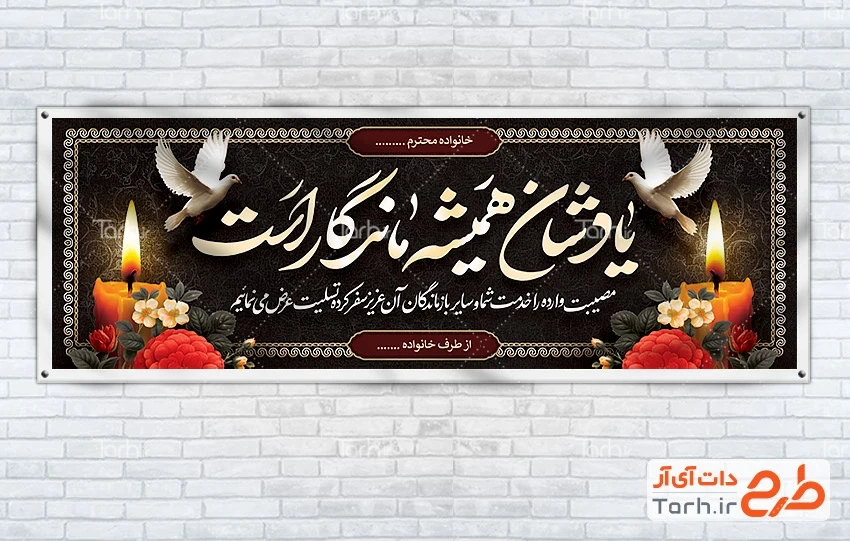 طرح لایه باز بنر پلاکارد تسلیت با خوشنویسی یادشان همیشه ماندگار است کد فایل 9516437