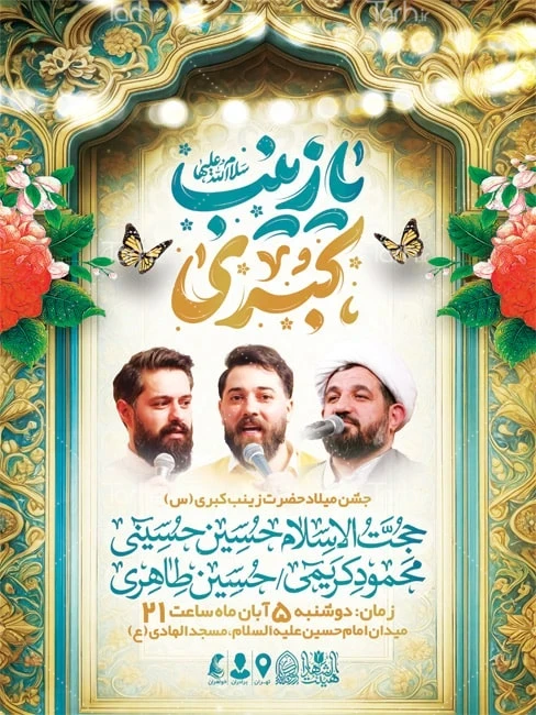 طرح پوستر اطلاعیه ولادت حضرت زینب با فرمت psd و قابل ویرایش در نرم افزار فتوشاپ به صورت لایه باز توسط تیم طراحان طرح دات آی آر طراحی شده است. در طرح لایه باز اطلاعیه ولادت حضرت زینب از تصاویر و المان های با کیفیت و متناسب با استاندارد چاپ استفاده گردیده است. طرح بنر اطلاع رسانی میلاد حضرت زینب شامل تایپوگرافی یا زینب کبری، وکتور گل و دارای مکان و زمان مراسم جشن میلاد حضرت زینب کبری (س) می باشد که المان های استفاده شده در طرح اطلاعیه خام ولادت حضرت زینب قابلیت ویرایش، جابه جایی و تغییر سایز را دارا بوده و شما می توانید متناسب با سلیقه خودتان طرح اطلاعیه ولادت حضرت زینب را ویرایش نمایید.